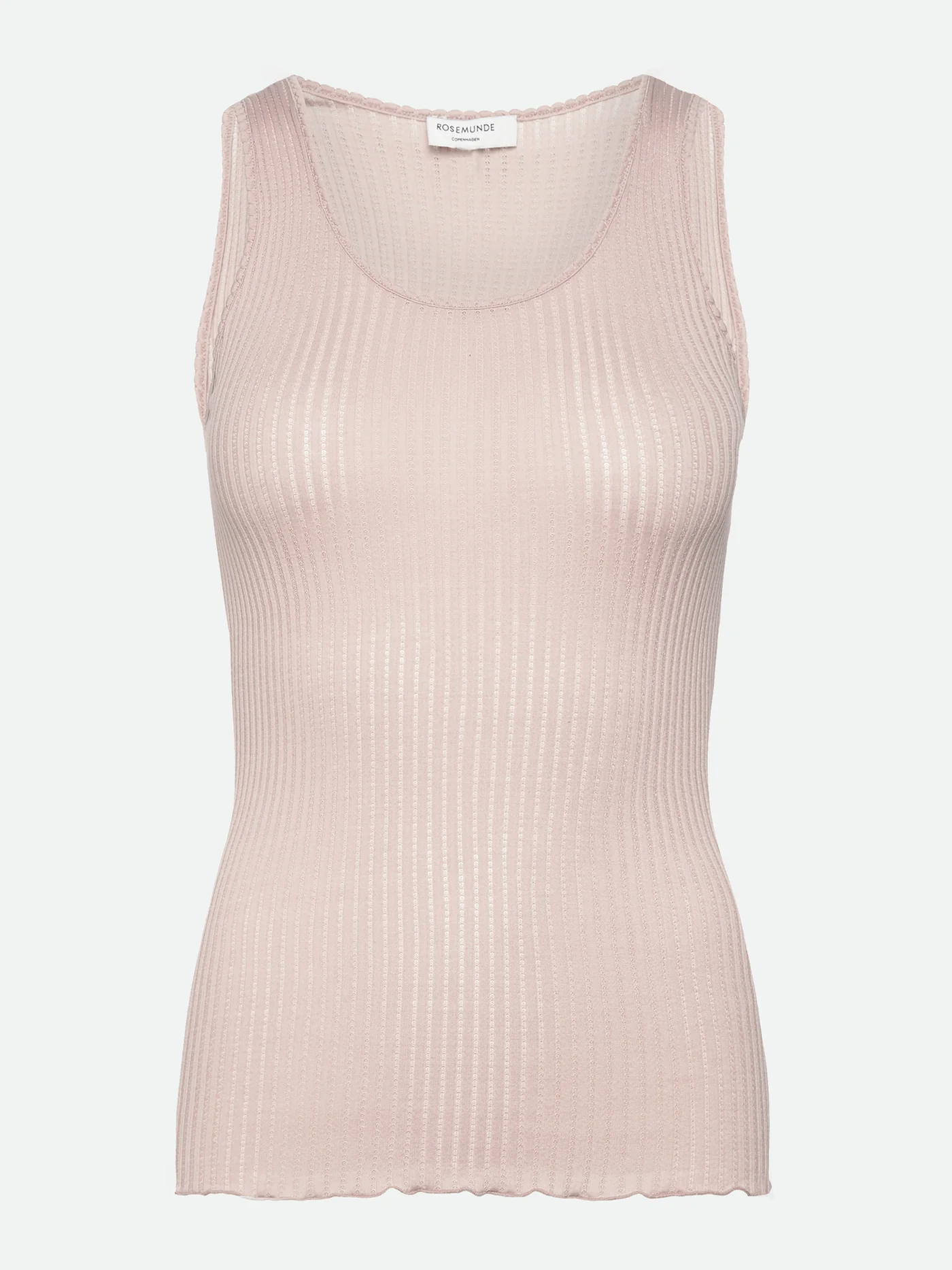 Deze eenvoudige basic tanktop is gemaakt van een zachte en ademende mix van zijde en katoen. De tanktop heeft een mooie geribbelde structuur en een ronde hals. Een tijdloze klassieker, perfect voor je capsulegarderobe.