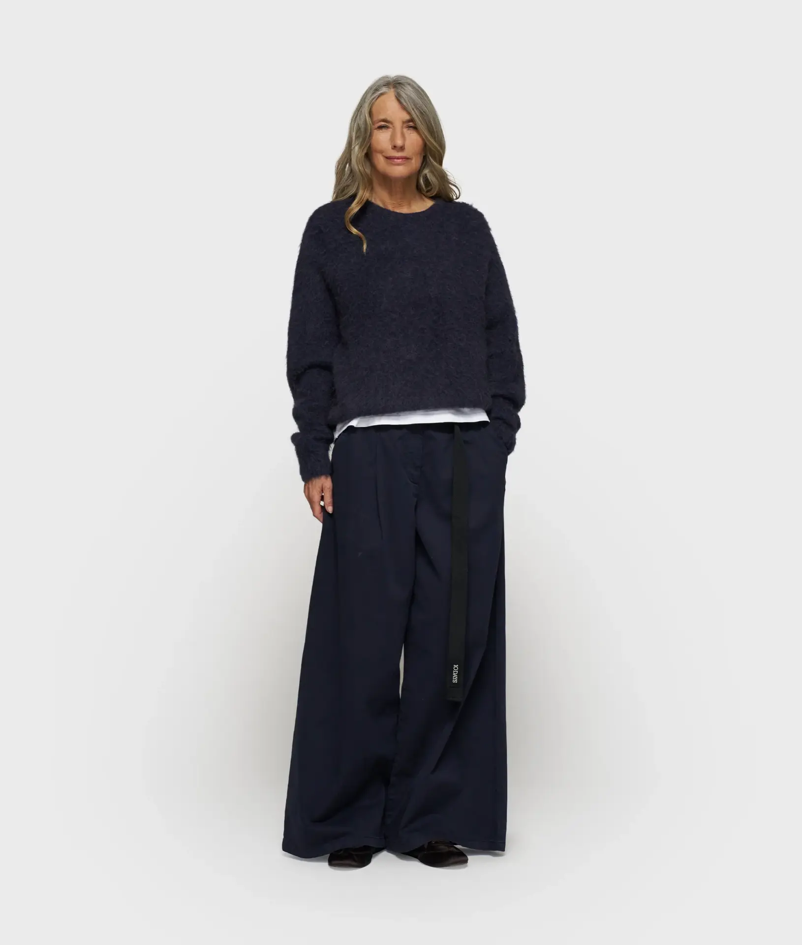 Relaxed fit cropped gebreide sweater, gemaakt van zachte brushed hairy wolblend. Voorzien van ribgebreide boorden met elastaan en een ’10’ monogram borduring op de rug.