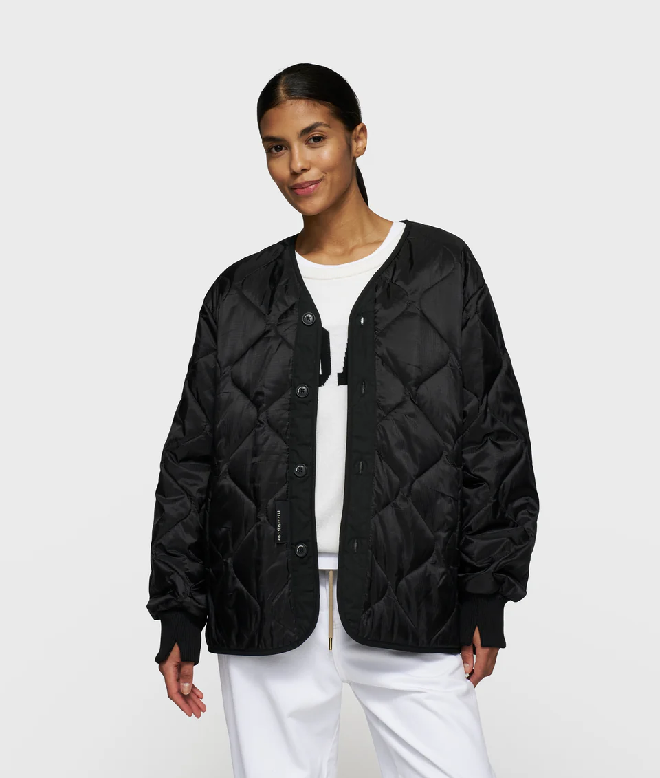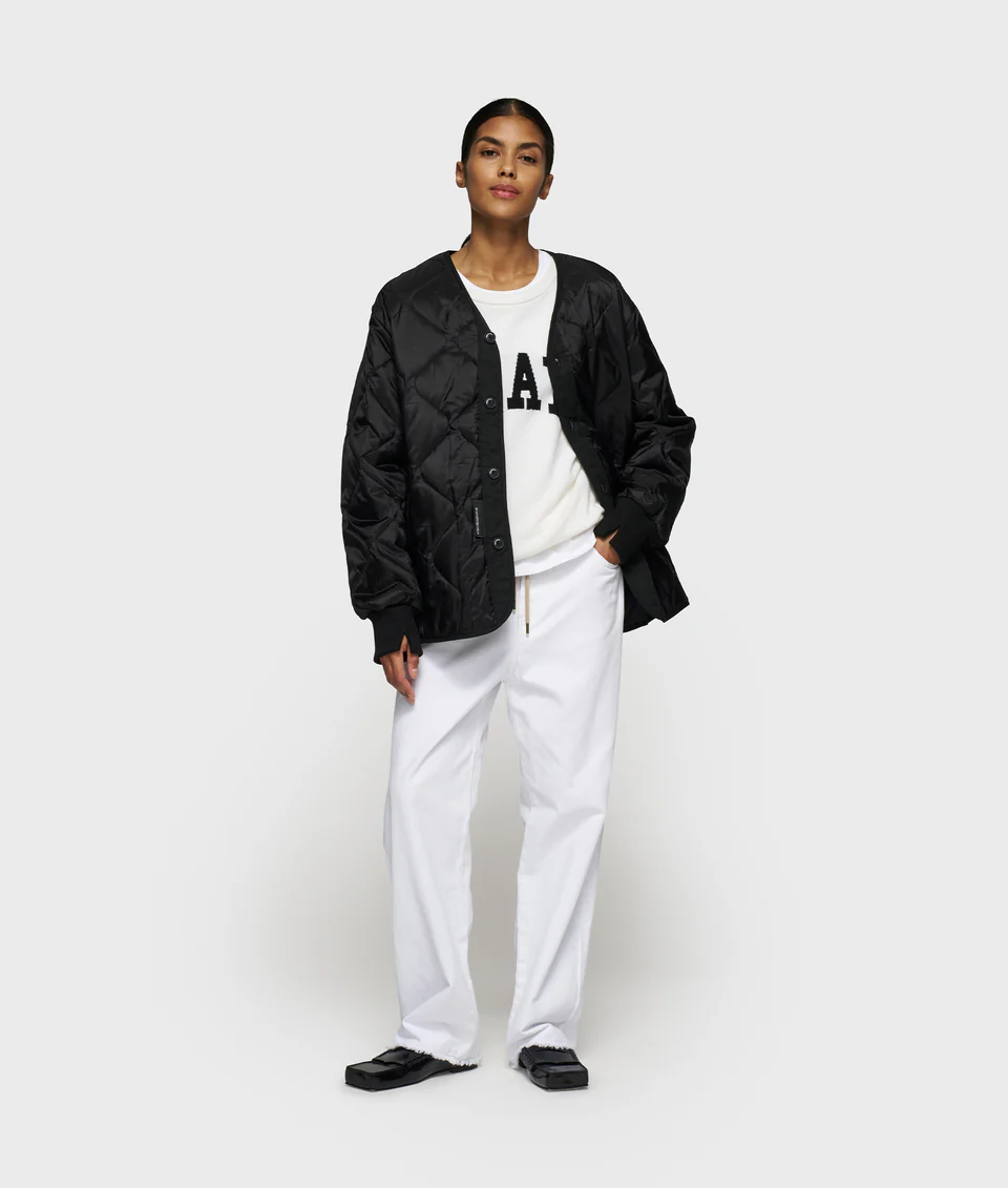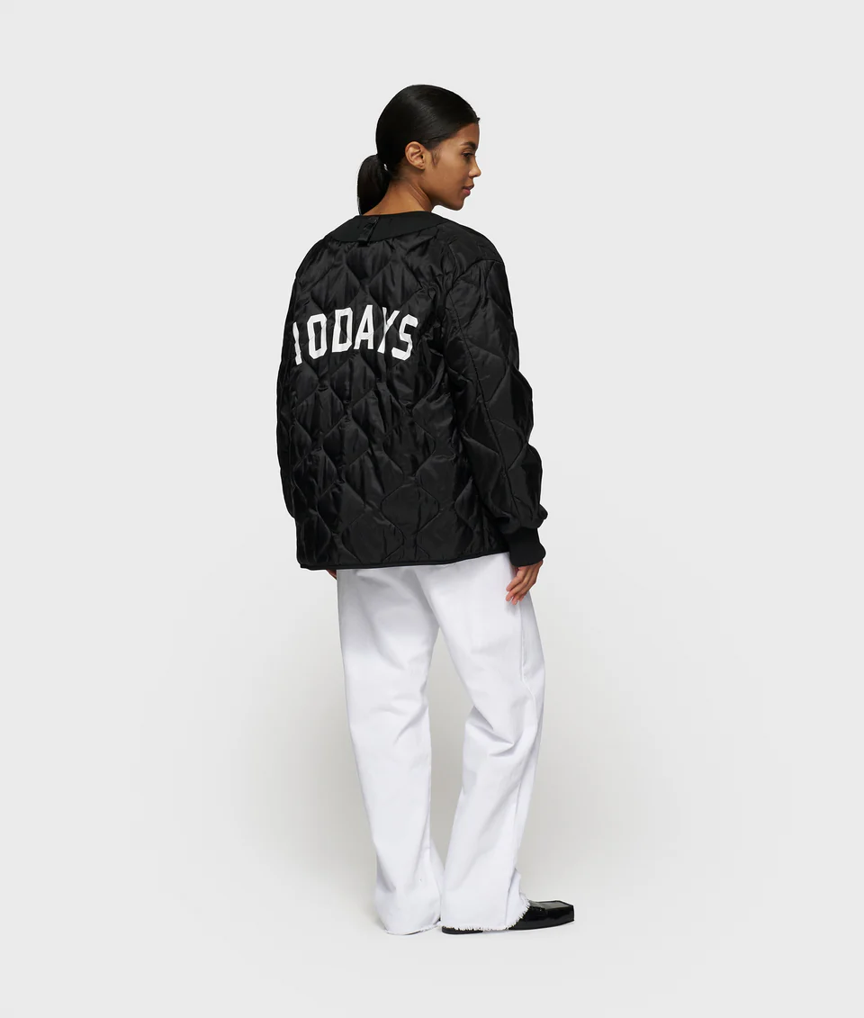 Oversized fit lichtgewatteerde jas, gemaakt van ultralichte ripstop nylon met katoenen poplin accenten. Voorzien van drukknopen, ribgebreide manchetten met split, steekzakken en een ‘10DAYS varsity’ waterbase print op het achterpand.