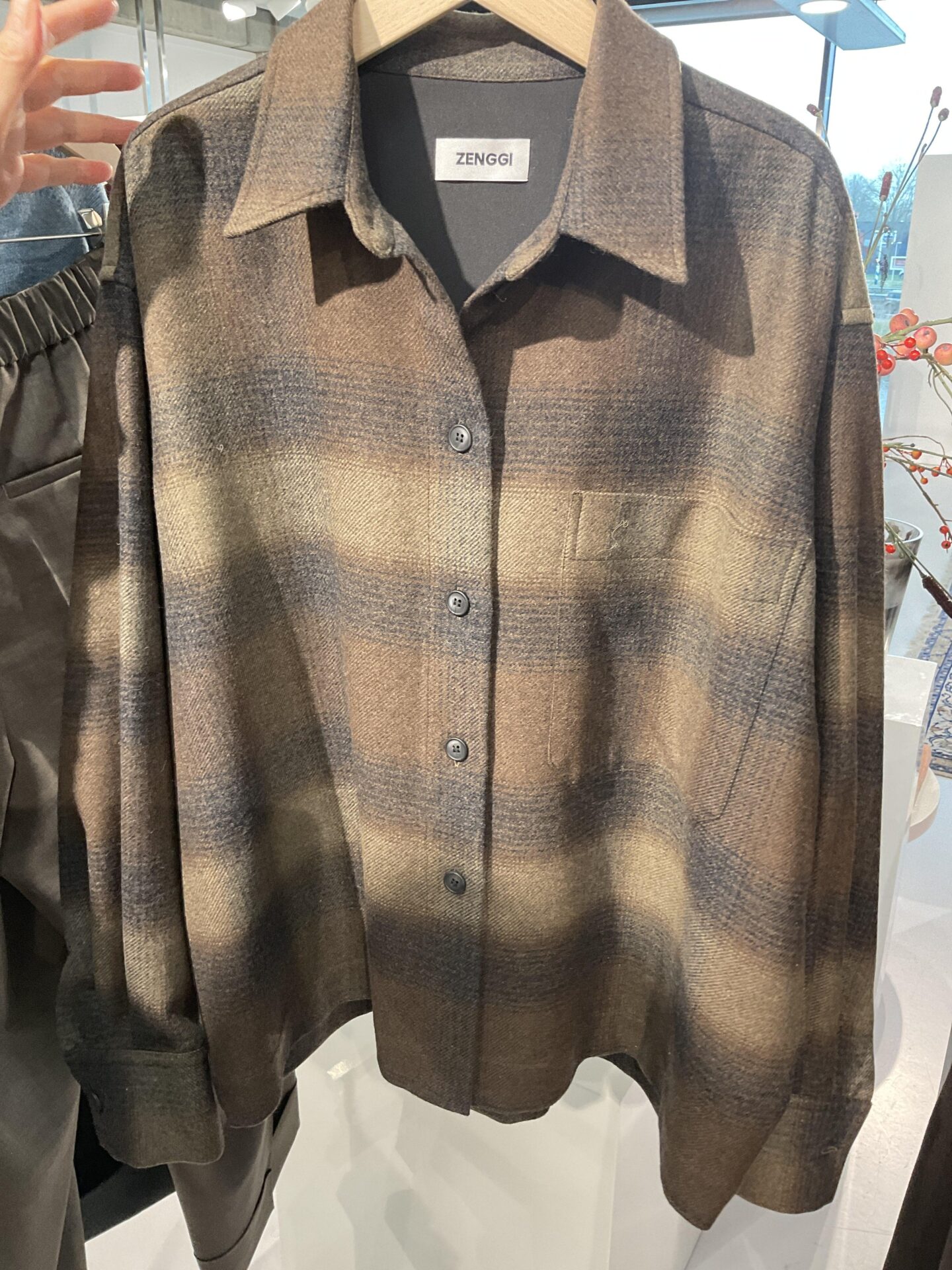 Overhemdblouse van mix van wol met ruitpatroon voor een prachtig effect. Boxy fit silhouet met opgestikte voorzak en knoopsluiting.
