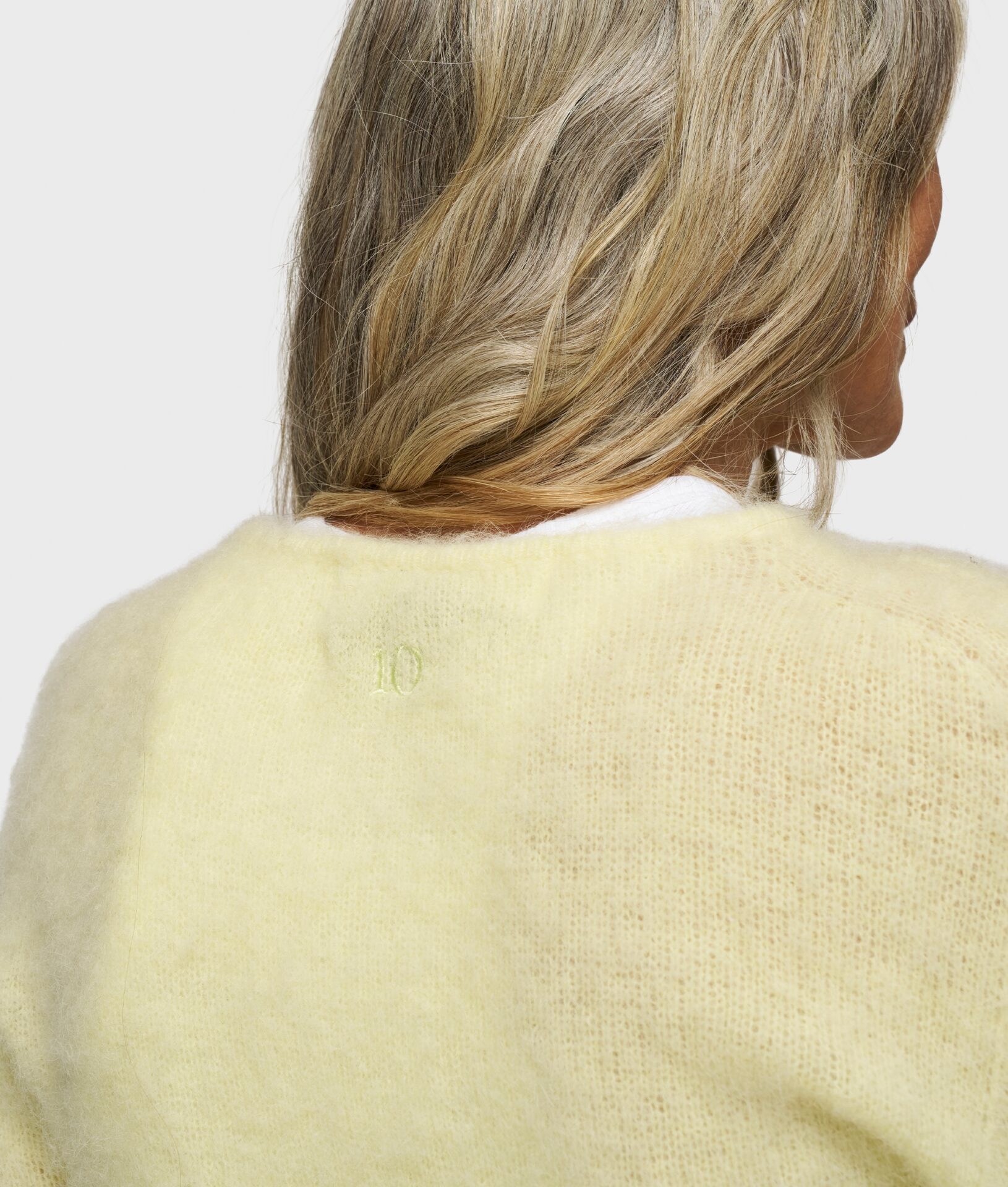 Slim fit sweater met ronde hals, gemaakt van zachte brushed hairy wolblend. Voorzien van een jersey tubular afwerking bij de hals en zoom en een ’10’ monogram borduursel middenachter.