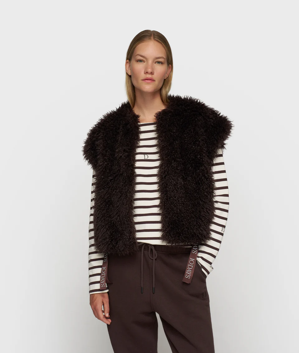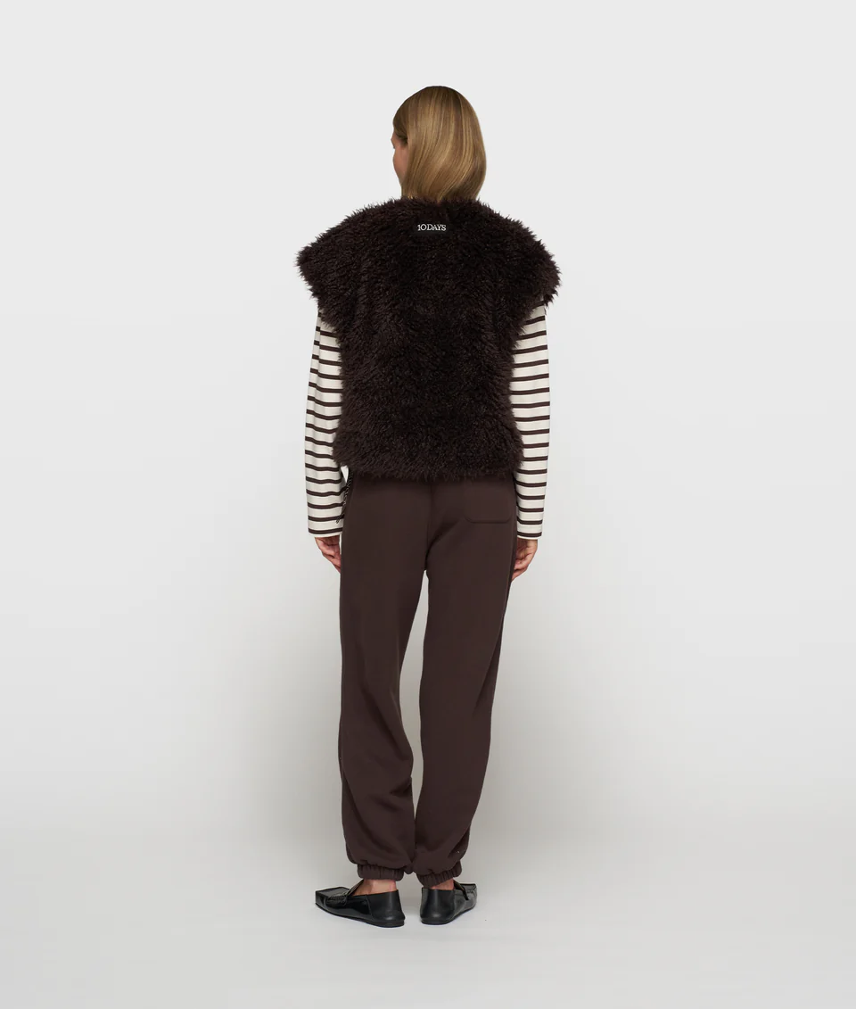 Regular fit hairy gilet met voering. Voorzien van een ronde hals, een haak- en oogsluiting, steekzakken, katoenen tapes onderaan de zijnaden met daarop 10DAYS rubberprints en een 10DAYS label op de rug.