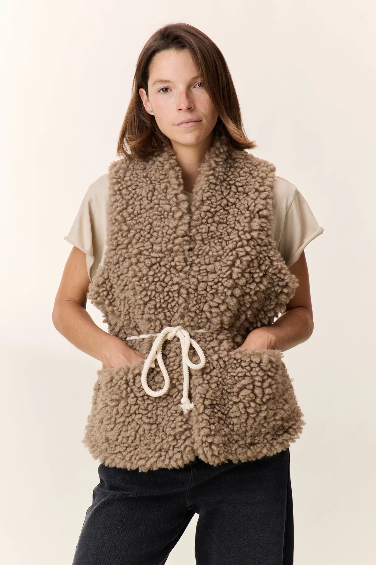 Het Vinny PLN-jack is een Leon & Harper-klassieker met zijn mouwloze snit en gedurfde volume. Herkenbare boucle-textuur, brede kraag voor een gedefinieerd silhouet, rechte snit en gestructureerd laken kenmerken het stuk. Opgestikte zakken aan de voorkant en een stropdas met riem zorgen ervoor dat je de stijl naar wens kunt aanpassen. Leg het over een vloeiend shirt of een lichtgewicht trui om je look te creëren.