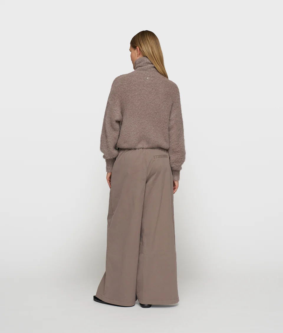 Oversized fit broek met wijde pijpen, gemaakt van GOTS-gecertificeerd biologisch katoenen twill. Voorzien van een elastische tailleband met ceintuur, schuine steekzakken en ’10’-monogram logo borduring onder de linker voorzak.
