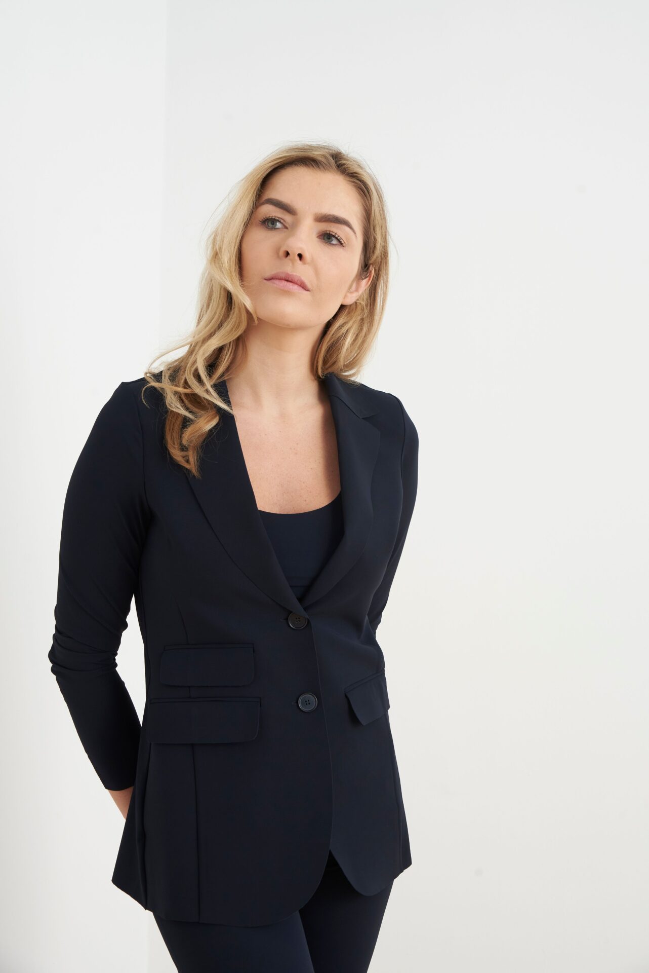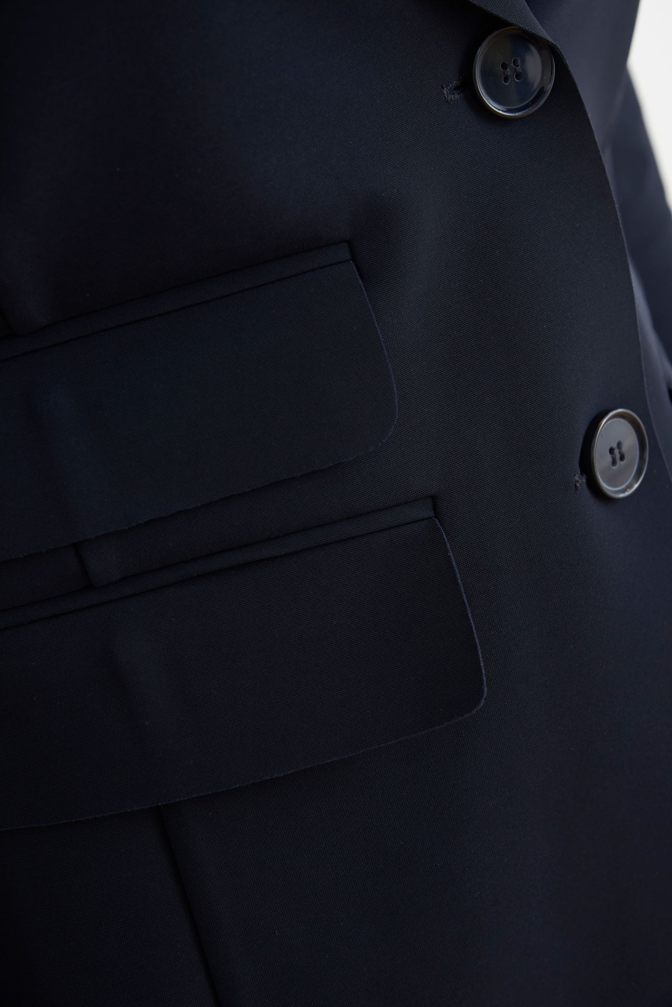 De Yuu Blazer van Japan TKY is gemaakt van hun bekende Travel Wear. De blazer is voorzien van een reverskraag, lange rechte mouwen, een 2 knoopsluiting middenvoor, drie paspelzakken met klep en coupenaden voor getailleerd silhouet.
